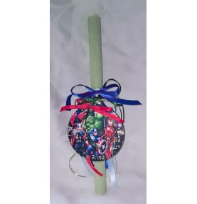 9,80 €Χειροποίητη πασχαλινή λαμπάδα με ξύλινο διακοσμητικό 10εκ Marvel Avengers, διακοσμημένη με κορδέλες και τοποθετημένη σε όμορφο κουτί δώρου. Ιδανική για παιδιά και βαφτιστήρια.