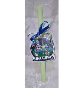 9,80 €Χειροποίητη πασχαλινή λαμπάδα με ξύλινο διακοσμητικό 10εκ Minecraft, διακοσμημένη με κορδέλες και τοποθετημένη σε όμορφο κουτί δώρου. Ιδανική για παιδιά και βαφτιστήρια.