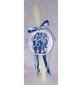 9,80 €Μοντέρνα πασχαλινή λαμπάδα με ξύλινο διακοσμητικό “67”, διακοσμημένη με κορδέλες και τοποθετημένη σε κουτί δώρου. Ιδανική για μεγαλύτερα παιδιά και εφήβους.